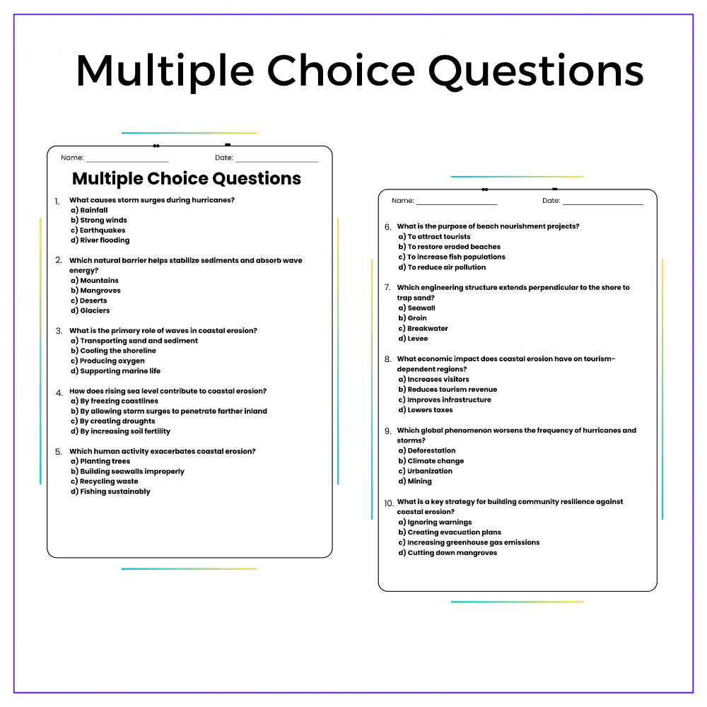 ✅ Multiple-choice questions (MCQs) – Review causes, effects, and protective strategies for beaches
