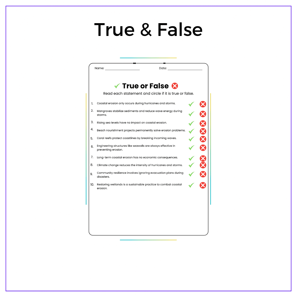 ✅ True & False exercises – Test students’ knowledge of erosion and coastal processes