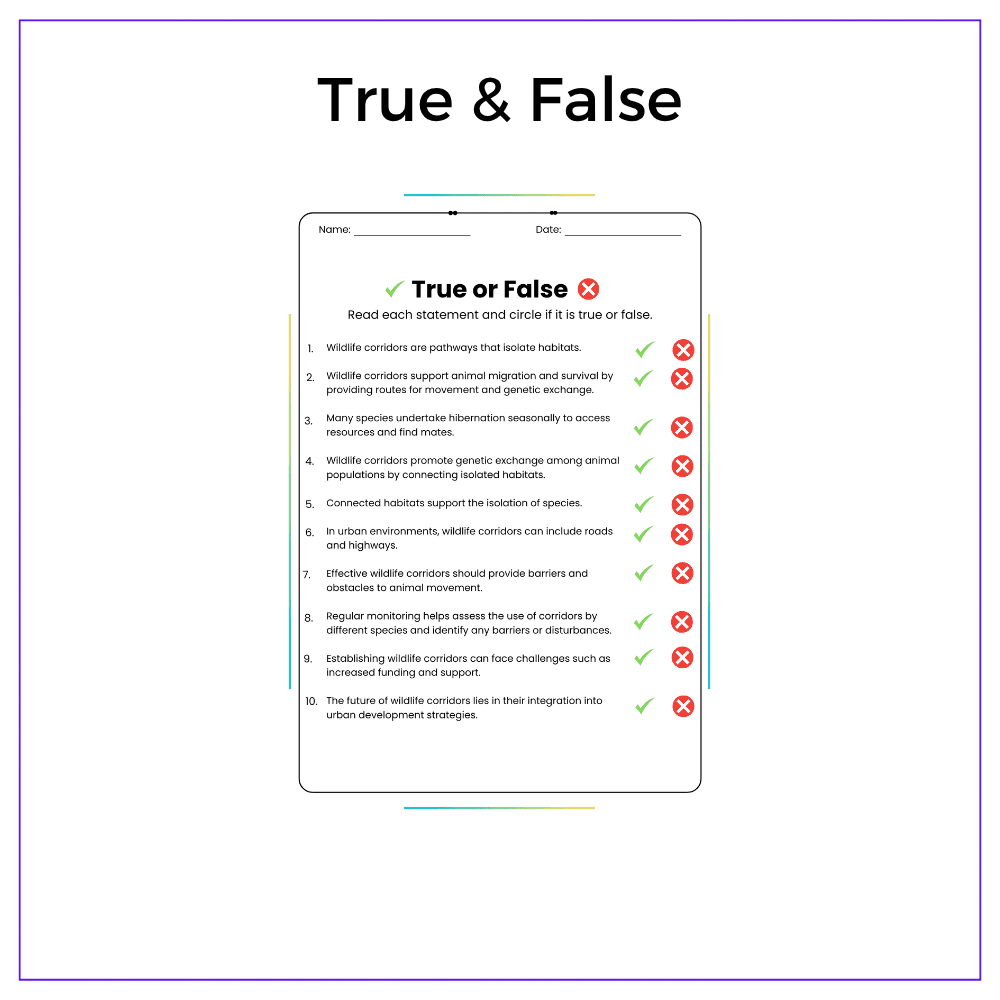 This worksheet helps your students understand habitat connectivity with this interactive Wildlife Corridors Supporting Animal Movement and Survival worksheet! Designed for grades 4–8, this resource explains how bridges, tunnels, and protected paths help animals migrate, find food, and reproduce safely.