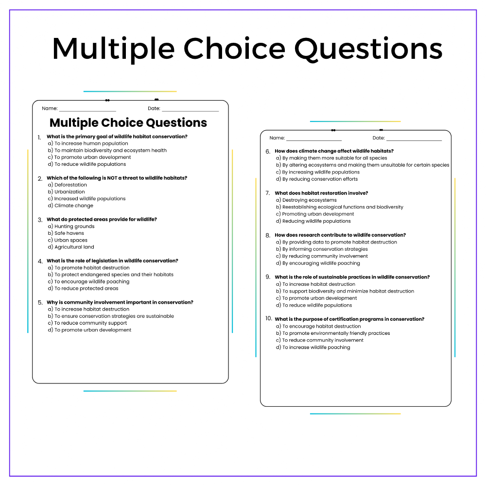 Inspire your students to protect Earth’s incredible wildlife with this Conservation of Wildlife Habitats worksheet! Designed for grades 4–8, this resource teaches the importance of natural habitats, the threats they face, and how conservation efforts help preserve biodiversity for future generations.